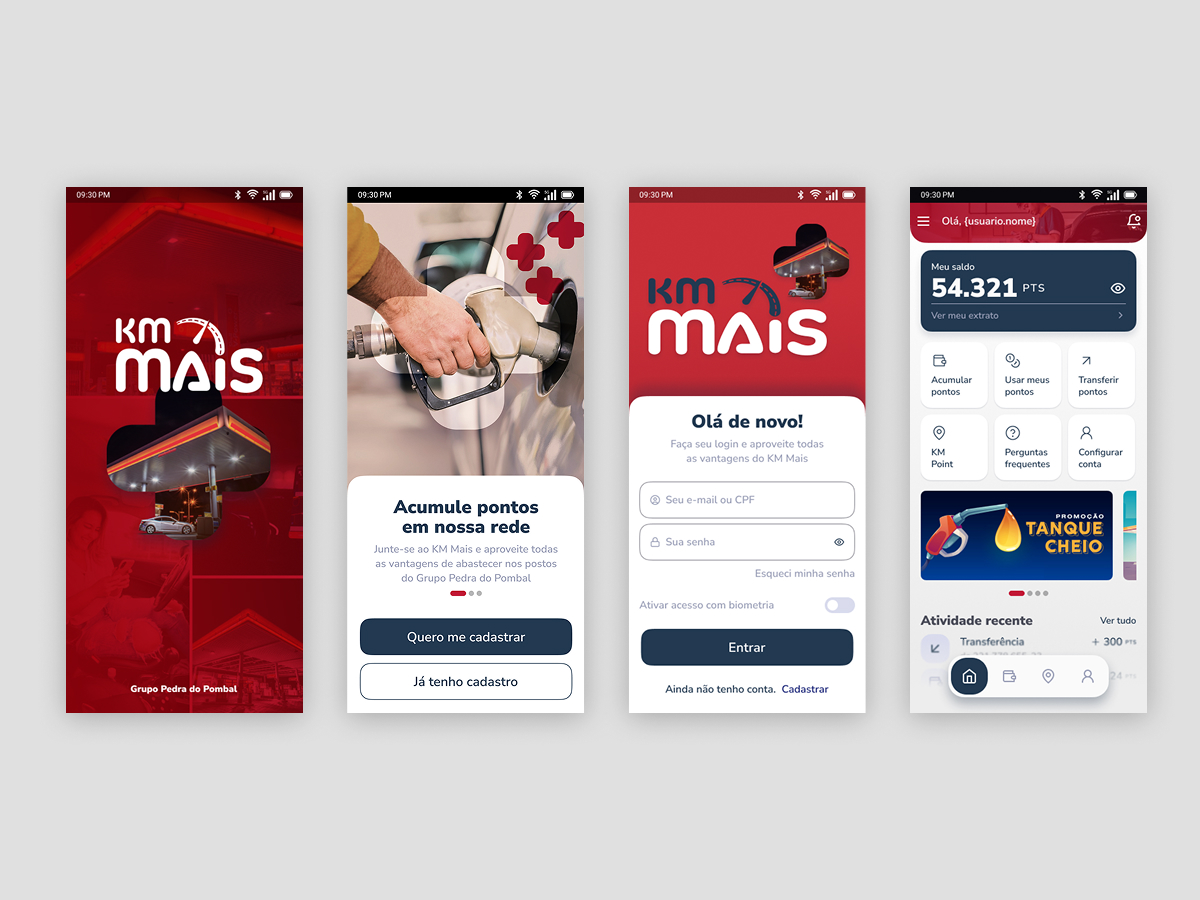 I was hired to give the KM Mais mobile app a fresh look, including an improved creative / art direction and UI revamp. The original Figma project also had issues with consistency and usability, and needed better components, organization and a functional clickable prototype.